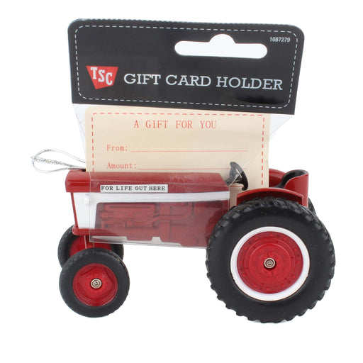 Figural tractor gift card holder Manufacturer: Tractor Supply Company (TSC) Material: Metal with rubber tires, wheels rotate Approximate dimension...