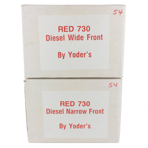 John Deere Red 730 tractor replica set Limited to 225 Serial number: 54 One wide front, one narrow front Diesel Adjustable front axle Flat fenders...