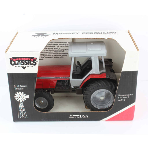 Massey Ferguson 3660 tractor toy Manufacturer: Scale Models, made in the USA Material: Diecast metal with rubber tires Scale: 1/16 Approximate dim...