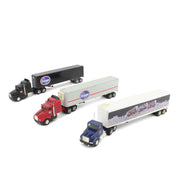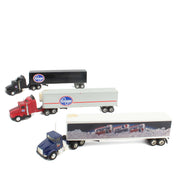 Lot of (3) 1/64 Semi Trucks with (2) Box Trailers and (1) Refrigerated Box Trailer