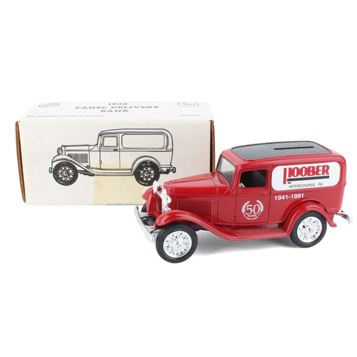 1932 Panel delivery bank C.B. Hoober decor Manufacturer: ERTL Material: Diecast metal with plastic and rubber components Scale: 1/25 Approximate d...