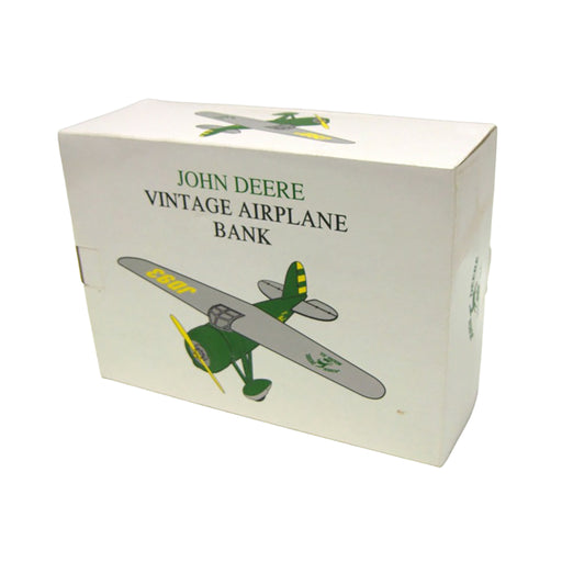 John Deere Vintage Airplane Bank 1st in a series Classic John Deere green and yellow decoration with gray wings Features a hidden coin slot Manufa...