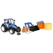 1/16 New Holland Powerstar T5.120 Tractor with Front Loader, Loading Box, Forks & Round Bales by Bruder