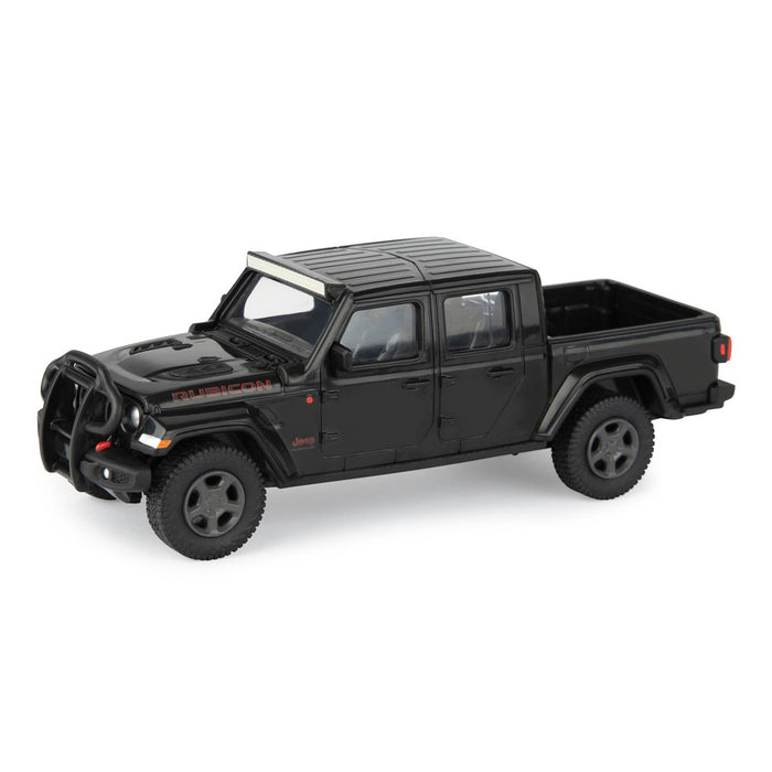 This item is made by ERTL. The 1/32 scale Jeep Gladiator Rubicon is made of durable plastic, making it great for both indoor and outdoor play! It features a black body with dark gray wheels, detailed hood and soft-feel tires. Clear cab windows reveal a detailed cab interior. It is equipped with a brush guard, light bar and an opening tailgate. Recommended for ages 3+ years.