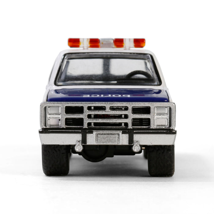 The 1/64 scale 1985 GMC Suburban 2500, featuring New York City Transit Police Department deco, is part of Greenlight Collectibles' Hobby Shop Series 16. This diecast metal replica, designed with rubber tires and select plastic components, comes with a detailed police officer figure. Measuring approximately 3.25 inches in length, this model captures the essence of the iconic GMC Suburban used by the NYC Transit Police. Intended for display only, this collectible is ideal for enthusiasts aged 14 and up.