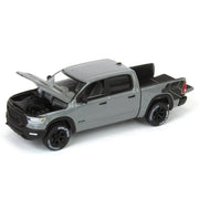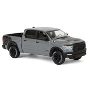 The 1/64 2023 Dodge Ram Rebel Lunar Edition in Gray is a highly detailed replica made by Auto World. This model is part of the Muscle Truck Series and showcases the 2023 Dodge Ram Rebel with a diecast metal body and chassis, rubber tires, and an opening hood. Measuring approximately 3.5 inches in length, 1.25 inches in height, and 1.25 inches in width, this 1/64 scale truck is perfect for collectors aged 8 and up.