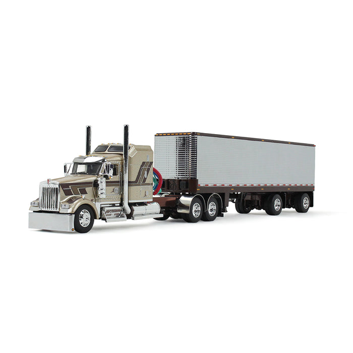 Introducing the first release in a new “Red's Favorites” series from DCP by First Gear: the Jason Sanders Kenworth W900L with 40ft Vintage Trailer! This new series was created in collaboration with Miss Flatbed Red and will feature truck drivers she has interviewed, as well as trucks she has illustrated.