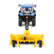 Add a standout piece to your 1/64 scale farm toy collection with this New Holland Powerstar Tractor Replica paired with the yellow New Holland Discbine 313 PLUS. A special 2026 Farm Show edition from ERTL, this detailed set features a diecast metal tractor body, hood, and front axle, clear cab windows, and a realistic cab interior, along with a diecast metal discbine frame, finely executed details, and a functional swivel hitch. The “2026 Farm Show” marking printed on the tractor cab roof adds season-specific appeal for New Holland fans and farm show collectors. Made from diecast metal with select plastic components, this 1/64 scale replica is an exceptional addition to any 14+ farm toy collector's display or collection!