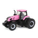 This is a 1/64 scale New Holland Genesis T8.380 tractor made by ERTL. It is decorated with a unique pink paint scheme! It is constructed with a die-cast body, cab frame and front axle. Additional features of this tractor include its clear cab windows and rear duals. According to the manufacturer, this tractor has a recommended age of 3+ years, making it great for play for play and display!