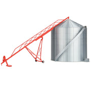 Bring realistic farm operations to your farm toy display or collection with this 1/64 scale grain auger replica, featuring authentic Feterl-inspired colors with a red undercarriage and red auger. This highly detailed plastic grain auger measures approximately 22 inches long. It reaches the top of a 42-foot Standi Grain Bin when used with an extra ring, and provides 11 inches of clearance at full working height, making it perfect for farm toy displays and miniature farm setups.