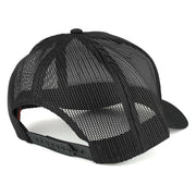 The Black McCormick Deering Farmall Logo Mesh Back Trucker Hat features a classic trucker style with black mesh and the iconic IH McCormick-Deering Farmall logo on the front. It has a 5-panel structured design and includes a plastic snap adjustment in the back to fit most sizes comfortably.