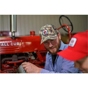 The International Harvester IH Logo Camouflage Mesh Back Cap is a must-have accessory for fans of the iconic brand. This cap features the IH logo patch prominently sewn on the front, showcasing your love for International Harvester. The camouflage design adds a touch of ruggedness and outdoor appeal. With a velcro closure, the cap offers a customizable fit that suits most adult head sizes. Its low-profile and structured construction ensure a comfortable and secure feel. Whether you're working on your farm or simply want to represent the IH heritage, this cap is the perfect choice for style and functionality.
