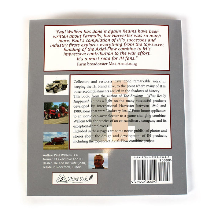 The legacy of International Harvester often focuses on the lasting memories of the distinctive red farm machinery. Collectors and restorers have done remarkable work in keeping the IH brand alive. This book, from best-selling author of The Breakup, Paul Wallem, shines a light on the many successful products developed by IH between 1940-1980, some that were "industry firsts." Included are never before published photos and stories about the design and development of IH products, including the top-secret Axial-Flow combine project.