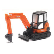This is a plastic Kubota KX040-4 mini excavator by New Ray. This excavator would make a great addition to any little Kubota enthusiast's toy collection. This excavator features pull back action and a movable boom with pivoting bucket. The excavator measures approximately 4in L x 1.5in w x 2.25in H. Per the manufacturer, this item is recommended for ages 3+ years.
